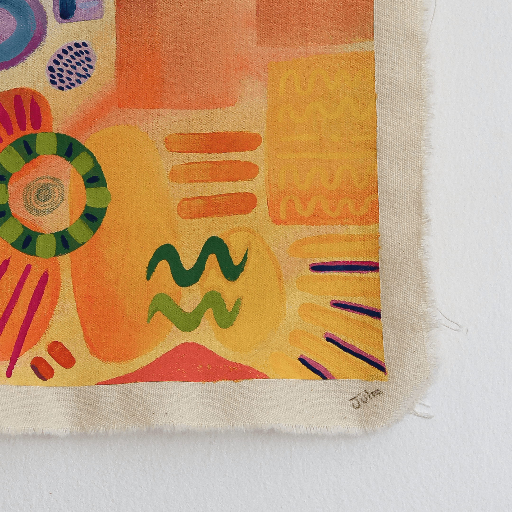 Watercolour & ink on 100% raw cotton. Framed.